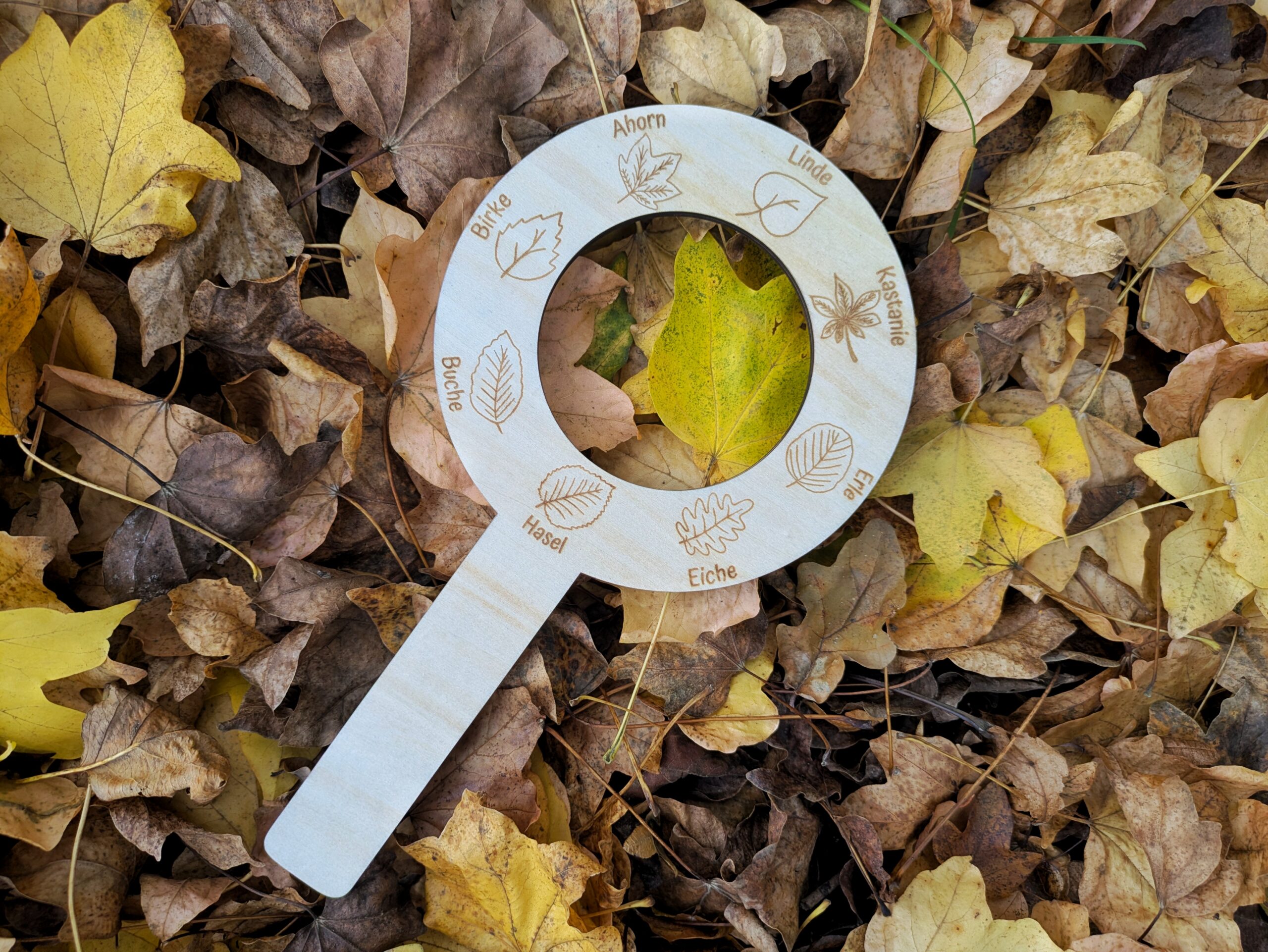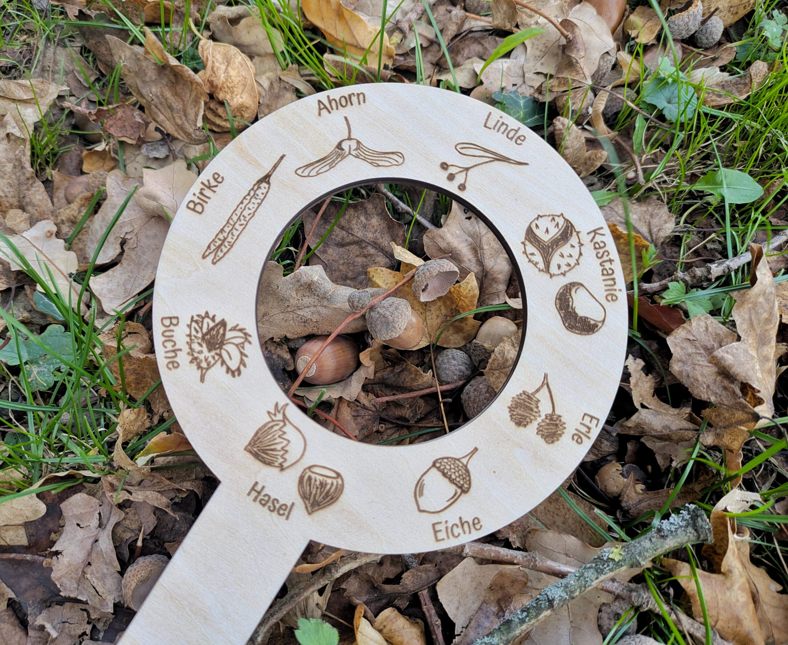 Diese Holzlupe eignet sich perfekt für kleine Entdecker, die die heimischen Bäume kennenlernen und bestimmen wollen.