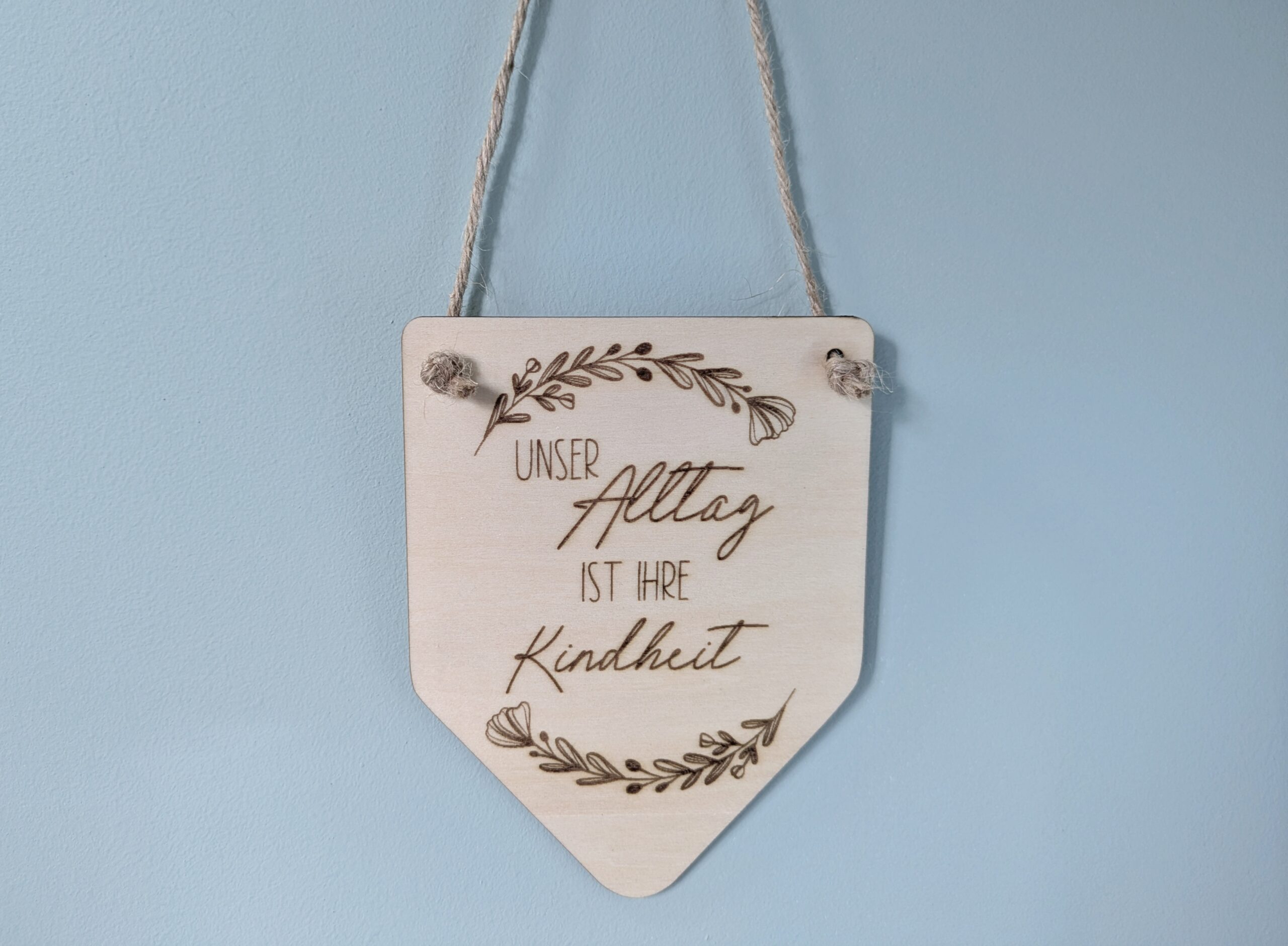 Kleines Holzschild zum Aufhängen mit Lasergravur