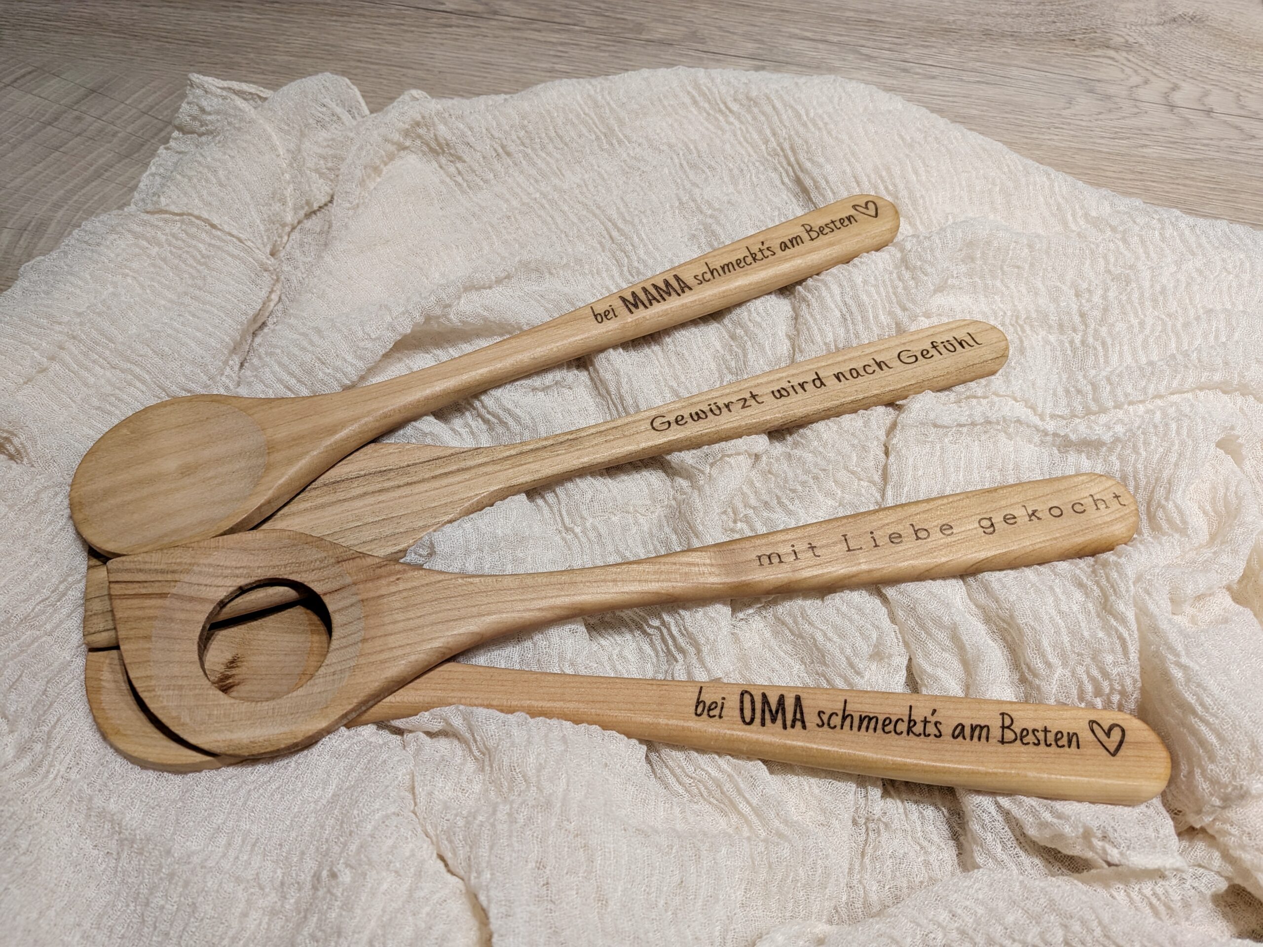 | Gravur | Bei Oma schmeckts am Besten, Bei Mama schmeckts am Besten, mit Liebe gekocht, Gewürzt wird nach Gefühl |
