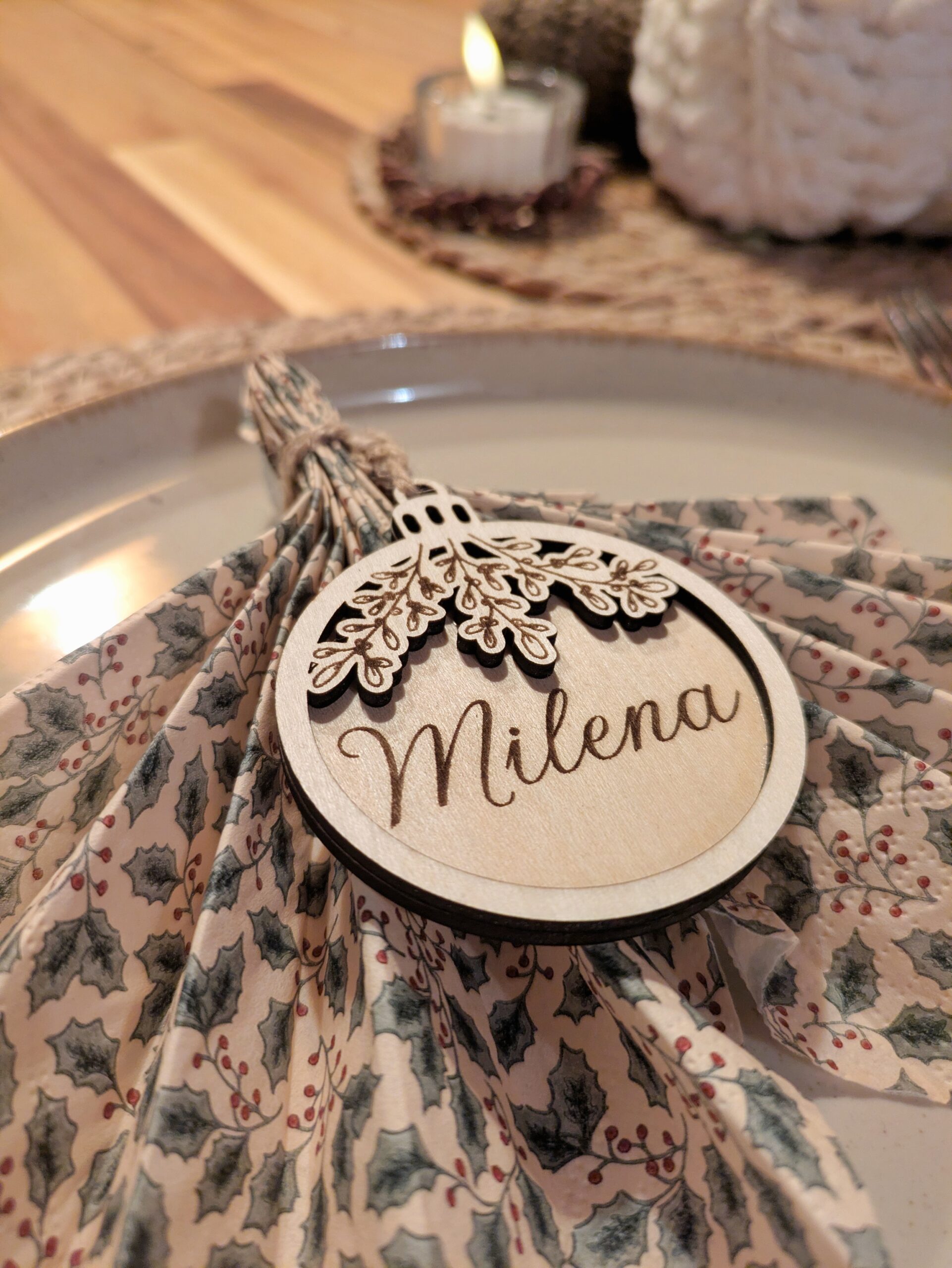 Ob als Geschenkanhänger, Tannenbaumschmuck oder für die gedeckte Festtafel – diese süßen Weihnachtskugeln lassen sich vielseitig verwenden und sind mit den eingravierten Namen auch noch so persönlich 🙂